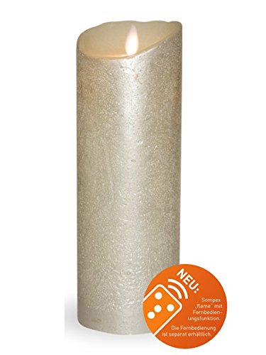 Sompex - Candela in vera cera con effetto fiamma a LED, telecomando e timer integrato, argento metallizzato, 0 x 8 x 23 cm