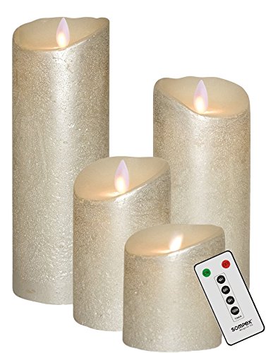 Sompex, candela in vera cera con fiamma LED, telecomando e timer integrato, avorio, 8 cm x 10 cm, argento metallizzato, 0 x 8 x 12.5 cm