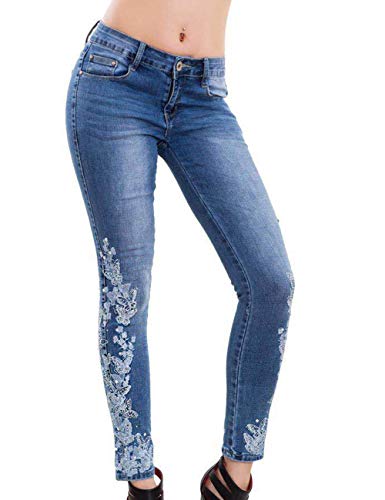SOMTHRON - Jeans da donna, stile casual, slim fit, con ricamo Blu chiaro L