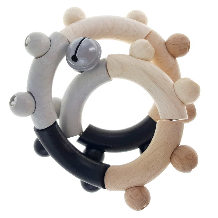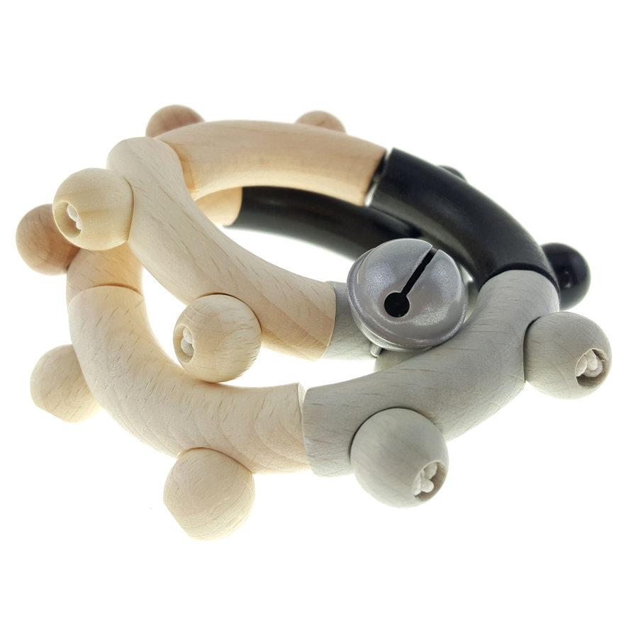 Le 8 parti in legno colorato sono montate su una corda elastica e consentono una grande varietà di forme. Quando la campanella suona, il cuore dei bambini batte più velocemente. Il sonaglio in legno di alta qualità, stuzzica la fantasia e affascina grazie al suo colore. Allena le capacità motorie,giocando. Dettagli: Numero articolo del produttore: 11106 Sonaglio in legno a forma di otto figure colorate. Con un campanellino Dimensioni: 17(L) x 9(L) x 1,5(H) cm Materiale: Legno 100% made in Germany ALter: a partire da 6 mesi Attenzione! Lasciate giocare il bambino solo sotto la supervisione di un adulto. Controllare regolarmente il giocattolo e rimuoverlo immediatamente in caso di difetti o danni. Non allungare mai il giocattolo e non attaccare mai a corde, nastri, cinghie o parti sciolte degli indumenti. Tuo figlio può soffocare.