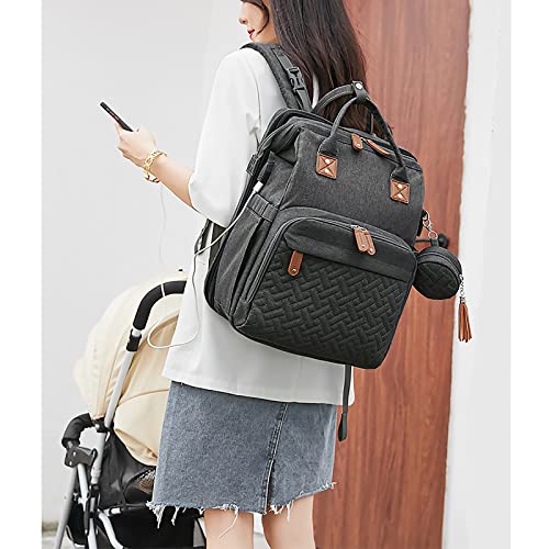SONARIN Zaino Fasciatoio con Lettino Pieghevole,Borsa Fasciatoio Borsa per Pannolini Zaino Mamma Multifunzione Impermeabile Borsa Passeggino con Tappetino,Borsa Ciuccio e Porta USB(Grigio)