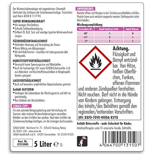 SONAX 01315000 - Detergente antigelo e trasparente per vetri circolari, 20 °C
