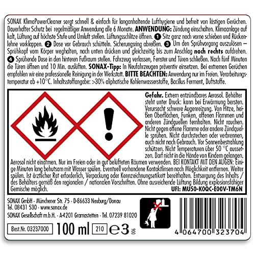 Sonax KlimaPowerCleaner AirAid probiotico garantisce un'igiene dell'aria di lunga durata e libera da fastidiosi odori.