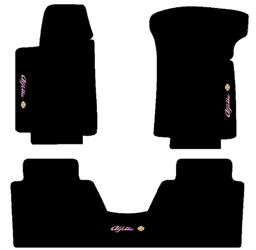 SonCar Tappeti per Auto Neri, Set Completo di Tappetini in Moquette su Misura con Ricamo a Filo Rosa