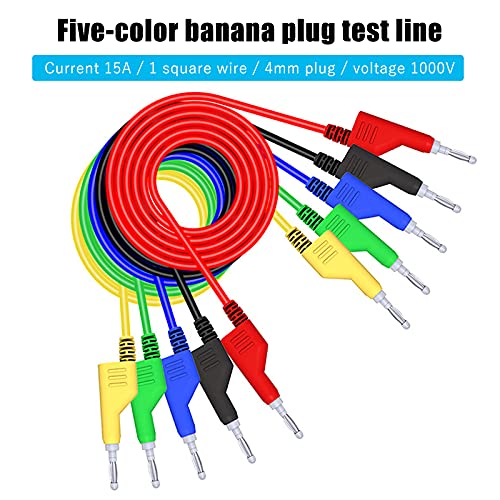 Cavi con spina a banana: conduci 5 pezzi di cavi di prova morbidi da 1 M 4 mm 15 A da banana a spina a banana. Questo è utile per i circuiti di bypass e per apportare modifiche temporanee o test sui circuiti.