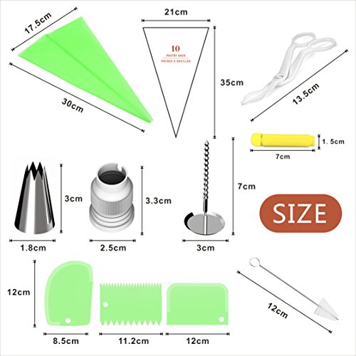 Ugelli in acciaio inossidabile. Tutti gli accessori inclusi sono in materiale di prima qualità e possono essere lavati e riutilizzati. Set professionale fai da te facile da usare a casa tua. Questo kit di decorazione per torte ti offre tutto il necessario per decorare la tua torta, nessuna esperienza richiesta.