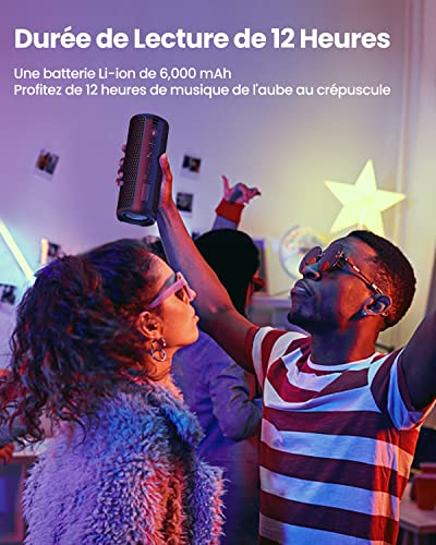 12 Ore Di Riproduzione a Lunga Durata: Una batteria ricaricabile da 6.000 mAh integrata alimenta fino a 12 ore di riproduzione al 50% del volume. Più lunghi dei normali cassa bluetooth portatile per esterni. Ricarica in 3-4 ore con il cavo di ricarica USB-C incluso.