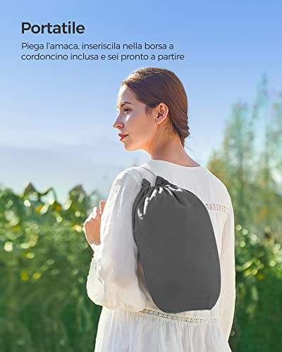 SONGMICS Amaca, 210 x 150 cm, Amaca Doppia, Max Portata 300 kg, per Giardino Terrazzo Balcone Esterno Campeggio, con Borsa da Trasporto, Cinghie di Fissaggio e Moschettoni, Grigio GDC15GY