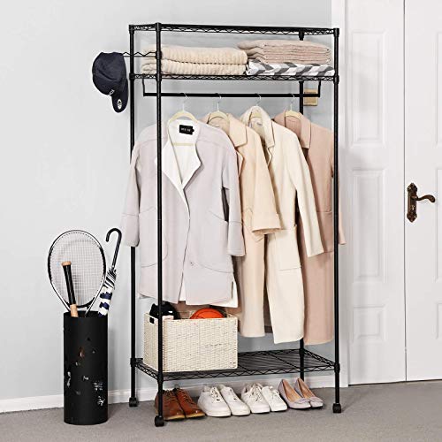 SONGMICS Armadio Resistente, Appendiabiti Mobile, con 1 Barra di Sospensione, 3 Ripiani, 90 x 45 x 185 cm, Nero LGR45P