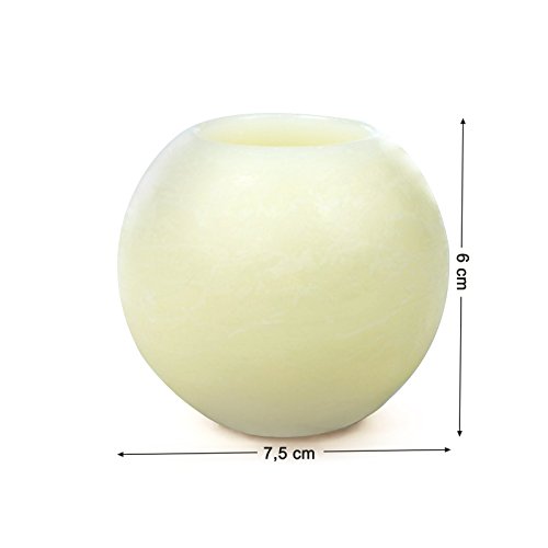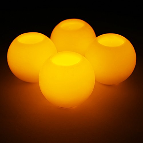 Dimesnioni - 4 Uguali candele sferiche sono incluse nella confezione, le dimensioni delle candele sono ? 7,5 x 6 cm (diametro x altezza), ogni candela è alimentata da una batteria a bottone CR2032