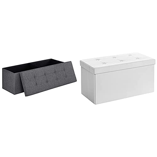 SONGMICS Cassapanca Pieghevole, Contenitore Portaoggetti, Max Portata Statica Di 300 Kg & Lsf106 - Cassapanca Con Contenitore Di 80 Litri, Pouf Poggiapiedi, Sgabello Pieghevole