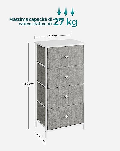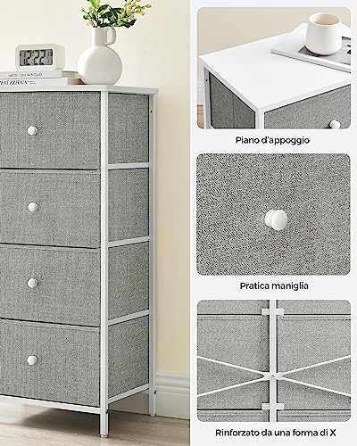 SONGMICS Cassettiera per Camera da Letto, Mobile con 4 Cassetti in Tessuto, Piano e Frontale in Truciolato, Struttura in Metallo, Cassettiera Compatta, Grigio Chiaro e Bianco LTS314L10