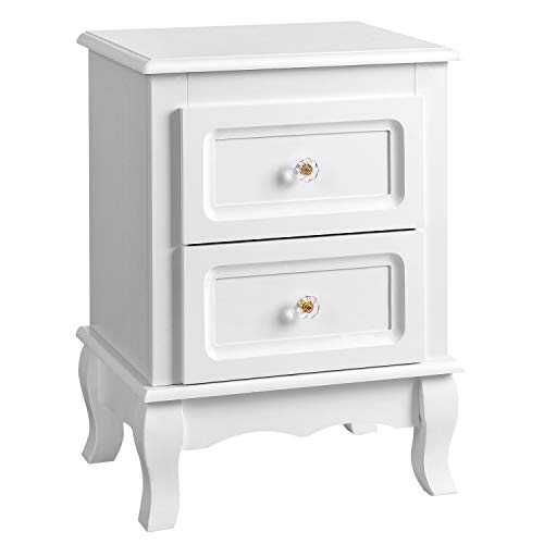 SONGMICS Comodino con 2 cassetti, bianco RDN01W, in legno, 38,5 x 52,5 x 30,5 cm (L x A x P)