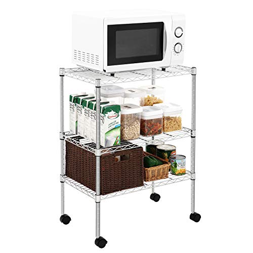 SONGMICS Cromato - Scaffale Acciaio Scaffale da Bagno Carrello da Cucina 3 Ripiani 60 x 35 x 81 cm LGR03C