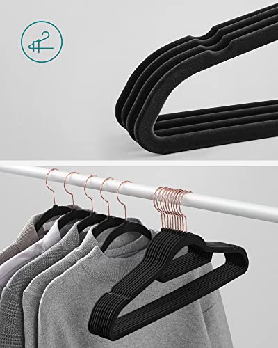 SONGMICS Grucce Appendiabiti in Velluto, 30 Pezzi, con Porta Cravatte e Gancio Color Oro Rosa, Spessore 0,6 cm, Salvaspazio, Lunghezza 43,5 cm, Cappotti Pantaloni Gonne, Nero CRF21BK30