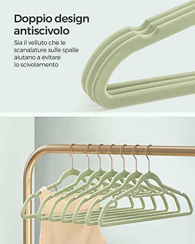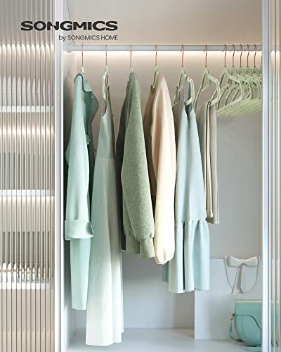 SONGMICS Grucce Appendiabiti in Velluto, 50 Pezzi, con Porta Cravatte e Gancio Color Oro Rosa, Spessore 0,6 cm, Salvaspazio, Lunghezza 43,5 cm, Cappotti Pantaloni Gonne, Verde Pastello CRF021GR50