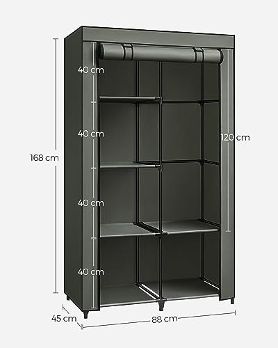SONGMICS Guardaroba in Tessuto, Armadio Pieghevole, 6 Ripiani e 1 Barra Appendiabiti, Struttura in Metallo, 45 x 88 x 168 cm, per Camera da Letto, Cabina Armadio, Verde Salvia RYG084C02
