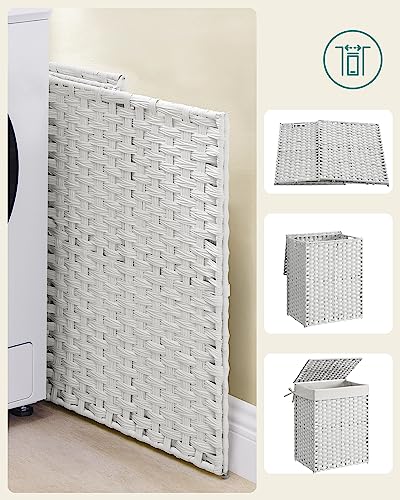 SONGMICS LCB51WT - Cesto portabiancheria da 90 l, tessuto a mano, cestino per vestiti in rattan sintetico, con coperchio e maniglie, pieghevole, borsa interna rimovibile, bianco