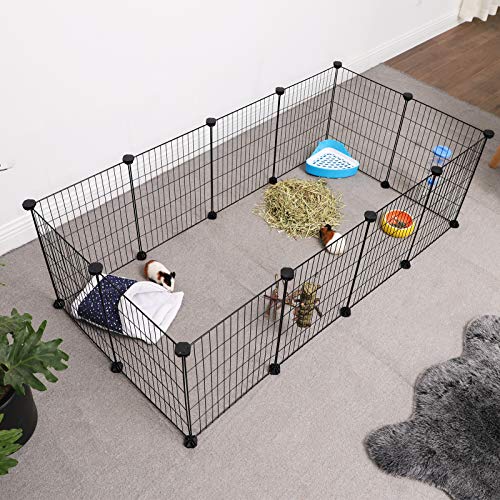 SONGMICS, LPI01H - Recinto fai da te per piccoli animali, ideale per cuccioli, conigli, porcellini d'India e altri animali di piccola taglia, in rete metallica, colore nero