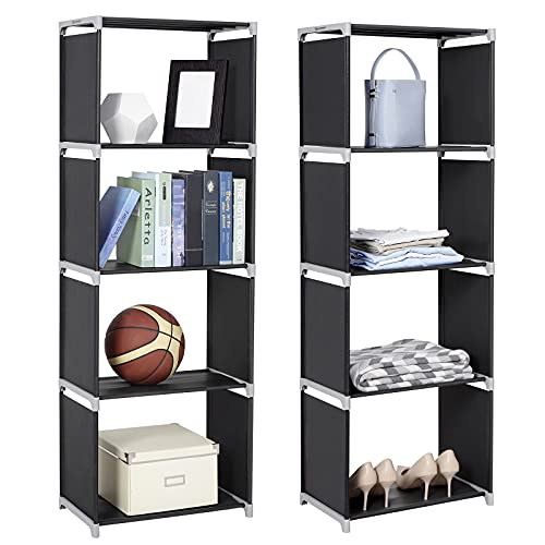 SONGMICS LSN14H-Scaffale a 4 Scomparti, 147 x 50 x 30 cm, per Cucina, corridoio, Cantina o Studio, Tessuto, Nero, 50 x 30 x 147 cm