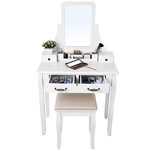 Ordine totale, con 4 cassetti e un organizer per trucchi, con 6 scomparti, il tavolo da toeletta offre molto spazio e permette di riporre in modo ben visibile i vostri utensili da trucco, come pennelli, smalti, rossetti.