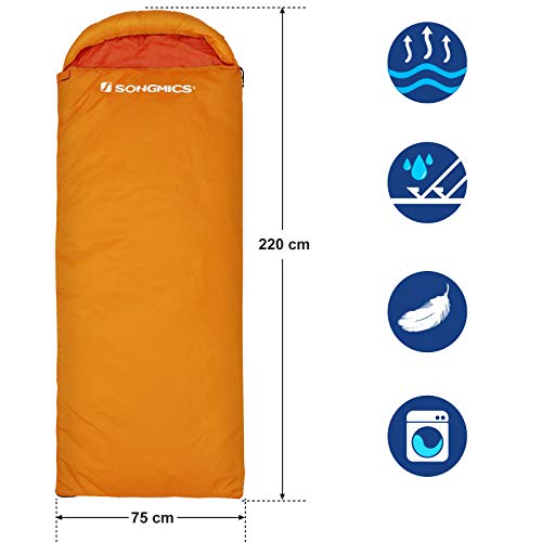 SONGMICS Sacco a Pelo con Cappuccio per Temp da -7 a 15°C, Leggero e Portatile con Sacca di Compressione, 3 Stagioni, per Campeggio Escursione, Attività all'Aperto, Arancione GSB02GO