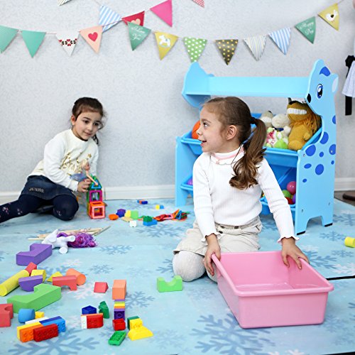 SONGMICS Scaffale per Giocattoli con Lati a Forma di Cervo 6 Contenitori e 1 Ripiano Scaffale per Bambini Dove Sistemare Giochi Libri Vestiti GKR21BU