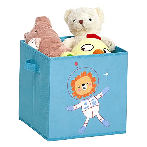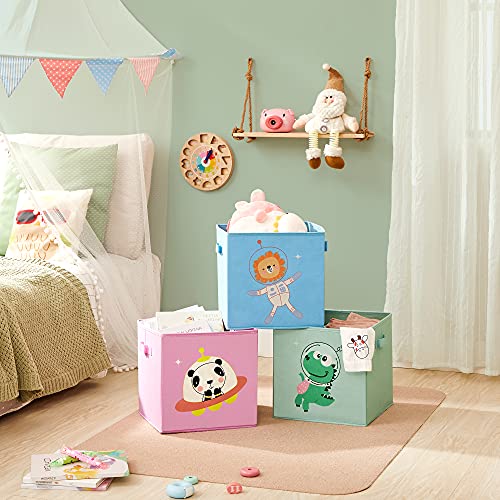 SONGMICS Scatole Portaoggetti per Bambini, Set di 3 Contenitori per Giochi Pieghevoli con Maniglie, Cameretta e Stanza dei Giochi, Tema Spaziale, 30 x 30 x 30 cm, Blu, Verde e Rosa RFB703Y03