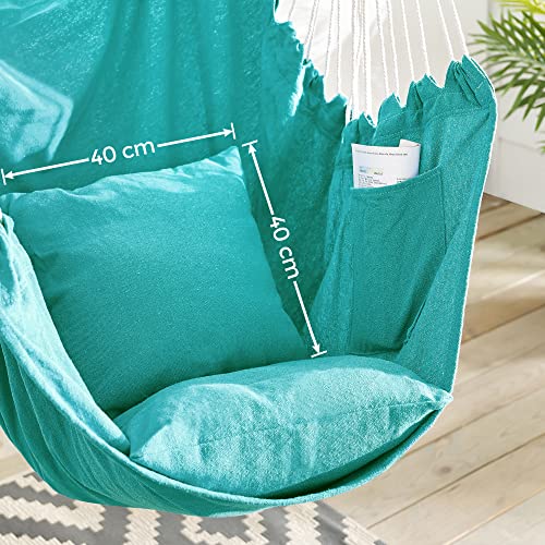 SONGMICS Sedia Amaca, Poltrona Sospesa Larga con 2 Cuscini, Sedia ad Altalena con Catena, Capacità di Carico 150 kg, per Interno e Esterno, Soggiorno, Camera da Letto, Turchese GDC187Q02