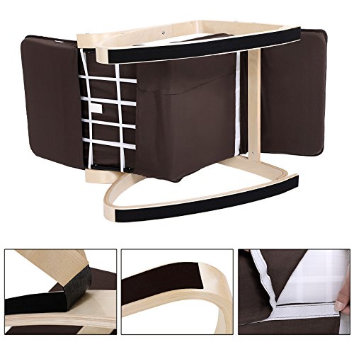 SONGMICS Sedia a Dondolo, Poltrona Oscillante, Sedia a Sdraio con Poggiagambe Regolabile, Copertura Sfoderabile, Struttura in Legno Massello, Capacità di Carico di 150 kg, Marrone LYY60Z