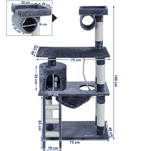 Divertente - 1 casetta e 1 amaca per gatto di gioco e di sonno, 3 piatteforme di osservazione per sdraiarsi e riposarsi, 1 corda sisal, 1 tubo e 1 scaletta da gioco