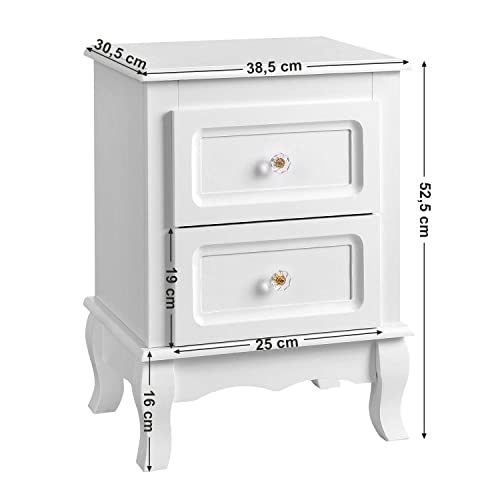 SONGMICS Vasagle 2 Cassetti Bianco, Comodino, 2 X 38,5 X 52,5 X 30,5 Cm