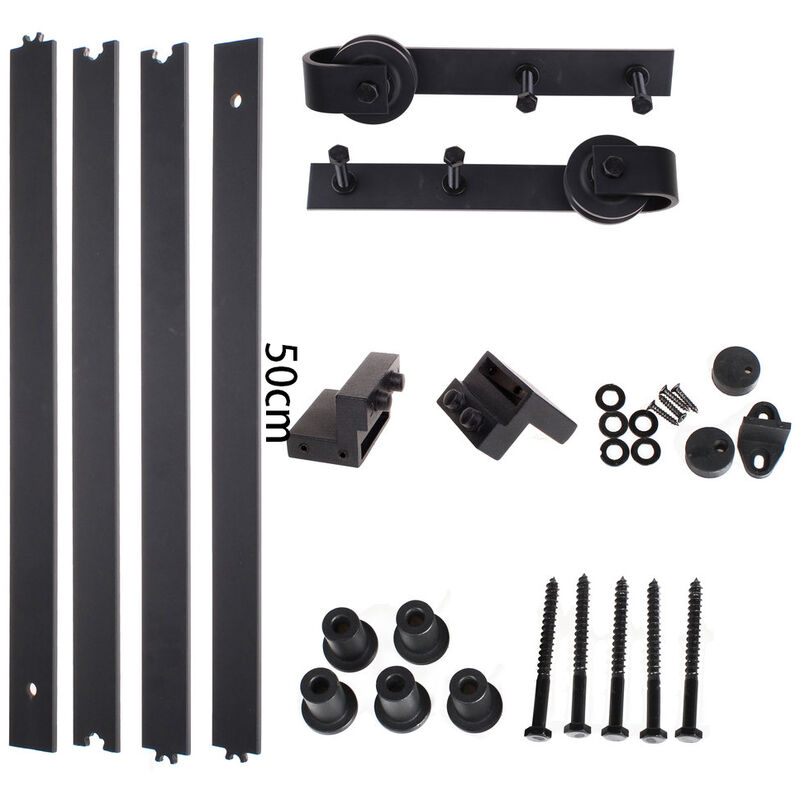 Un design classico e pulito che si adatta a qualsiasi stile di porta. Dimensioni: binario per porta scorrevole da 2 m, portata massima 150 kg, spessore adatto della porta in legno: 35 mm-50 mm. Materiale: acciaio al carbonio ad alta resistenza da 6 mm, più robusto e durevole, il tappo impedisce uno scorrimento eccessivo. Forte capacità portante: binario di guida in alluminio aeronautico, struttura a piastra rigida, la capacità portante è 2 volte più forte del normale binario di guida. Vernice superficiale nera, anticorrosione. Facile da installare: il kit di scorrimento può essere installato in breve tempo. Lo scivolo è silenzioso, sicuro e facile da far scorrere. Versatile: adatto per cucine, lavanderie, ripostigli, armadi, bagni e console di intrattenimento, garage e altro ancora.
