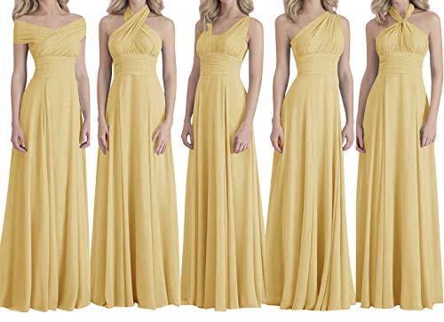 SongSurpriseMall Abito da Damigella d'onoroe in Chiffon Donna Multi Abiti da Sera Abiti da Sera Lungo Falten Prom Abito da Cerimonia Nuziale Abito da Cocktail Oro EU36