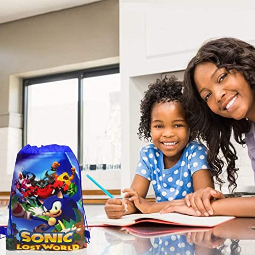 Sonic Coulisse Borsa, 12 Pezzi Sonic Borsa per Feste con Coulisse, Bambini Compleanno Festa Borsa Cartone Animato Tema Festa Coulisse Borsa Compleanno Festa Borsa per Bambini Festa