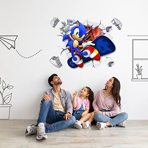 Sonic Wall Decalcomanie Adesivi, 3d Appeso Sonic Wall Stickers Camera da Letto Sfondo Parete Impermeabile Sonic Cartoon Wallpaper Adesivi per Soggiorno Partito Decorazione