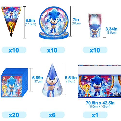 Sonic Decorazioni per Feste di Compleanno, 57PCS Sonic Party Supplies Set, Include Tazze, tovaglie, tovaglioli, tazza, piatto, per 10 Bambini Ragazze Ragazzi(blu)