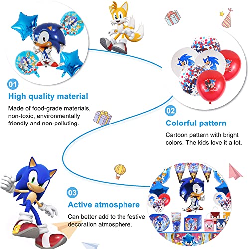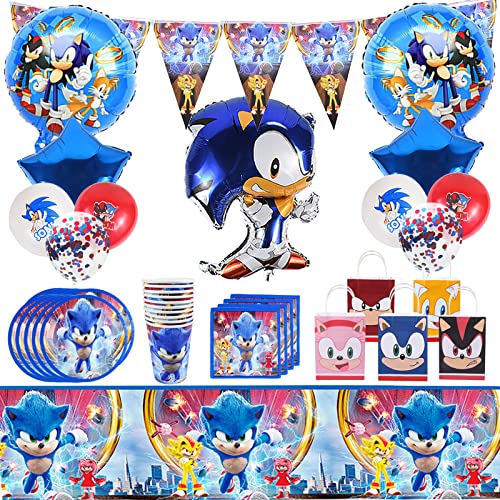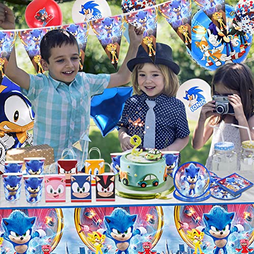 Sonic Decorazioni per Feste di Compleanno, 67PCS Sonic Party Supplies Set, Include Tazze, tovaglie, tovaglioli, Palloncini, stendardi, per 10 Bambini Ragazze Ragazzi