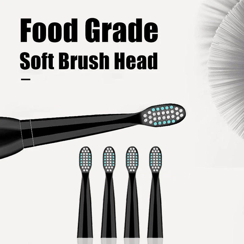 5 Mode Sonic Rechargeable Electric Toothbrush 4x Brush Heads Waterproof Ipx7 Charging, Black (Normal Usb Charging)