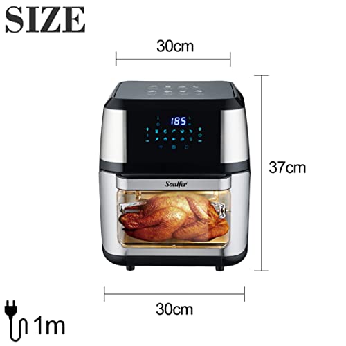 Sonifer Friggitrice ad aria calda, 12 l, XL, friggitrice ad aria calda, con touch screen a LED, 10 programmi, spegnimento automatico, senza olio, 1800 W (XXX-Large)