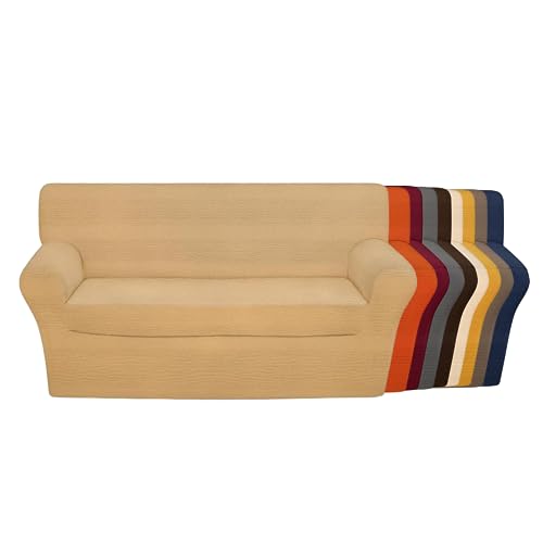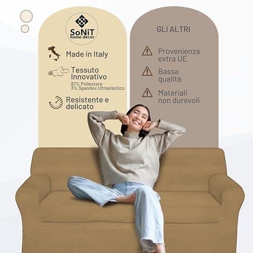 SONIT - Copridivano 2 Posti Con Braccioli - Copridivano 2 Posti Elasticizzato - Fodera Protettiva Universale Con Braccioli - Copri Divano 2 Posti con Braccioli Elasticizzato Made In Italy - Beige
