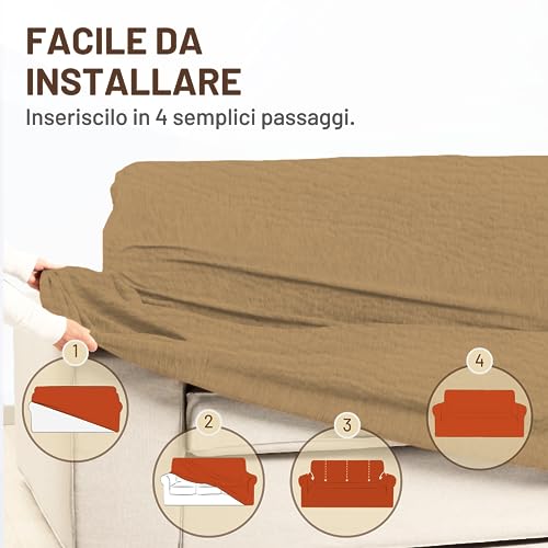 FACILE DA INSTALLARE - Grazie al tessuto estremamente elastico, questa copertura si adatta facilmente. Trova la parte posteriore del rivestimento del divano, copri l'intero rivestimento e infine inserisci il tessuto in eccesso nella fessura del divano per una vestibilità impeccabile