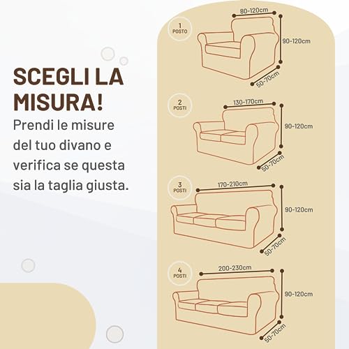 MISURA UNIVERSALE - Prendi le misure del tuo divano e verifica se questa sia la taglia giusta! Il copridivano 2 posti elasticizzato SONIT si adatta a una vasta gamma di divani con lunghezza compresa tra 130 cm e 170 cm. Il pacchetto include 1 pezzo della fodera per divano