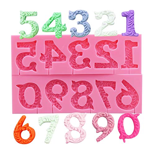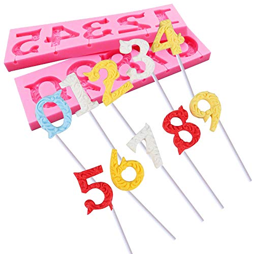 Sonku - Stampo in silicone con numeri da 0 a 9 numeri, antiaderente 3D, con 1 stampo per lettere minuscole per decorazione torte, zucchero, cioccolato, fondente, adatto per anniversario di compleanno