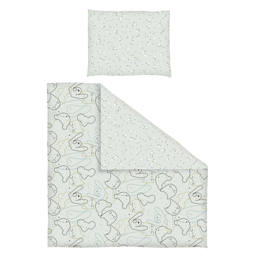 Dettagli del prodotto: Realizzato in Renforce di alta qualità Con chiusura a zip Federa: 35 x 40 cm Copripiumino: 80 x 80 cm Materiale e cura: Materiale: 100% cotone Lavabile a 60 °C