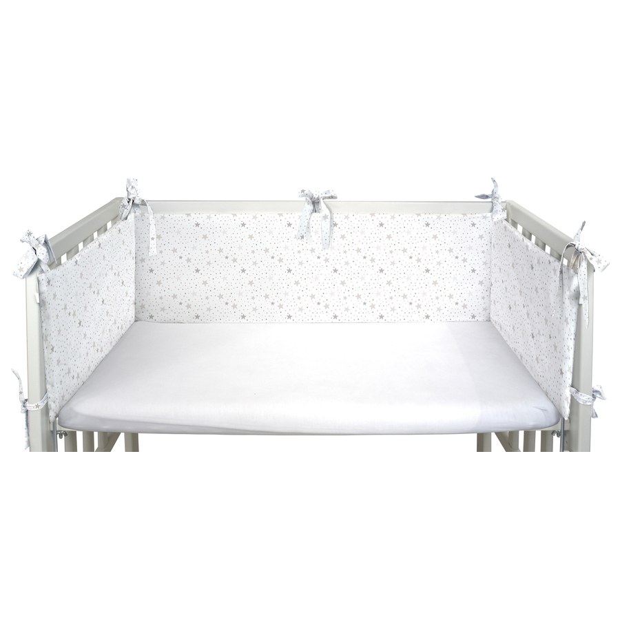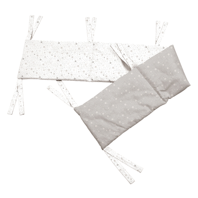 Dettagli del prodotto: Realizzato in Renforce di alta qualità Morbidamente imbottito Si fissa al lettino con lacci Protegge dalle correnti d'aria Si adatta ai letti 40 x 90 cm (quadrati) e 50 x 90 cm (arrotondati) Dimensioni: 26 x 170 cm Materiale e cura: Materiale superiore: 100% cotone Imbottitura: 100% poliestere Lavabile a 40 °C