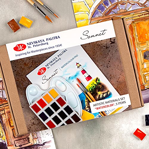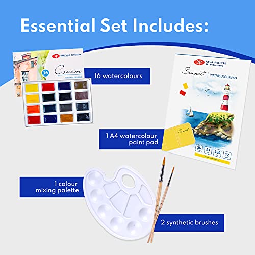 Sonnet Set Acquerelli Essential | 16 Colori Acquerellabili, Tavole Per Disegnare, Tavolozza E Pennelli | Creato Da Nevskaya Palitra
