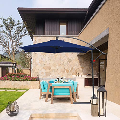 Sonnewelt 350cm Ombrellone da giardino | Ombrellone decentrato da giardino | Oombrelloni decentrati in alluminio protezione UV | ombrellone con manovella impermeabile - Blu