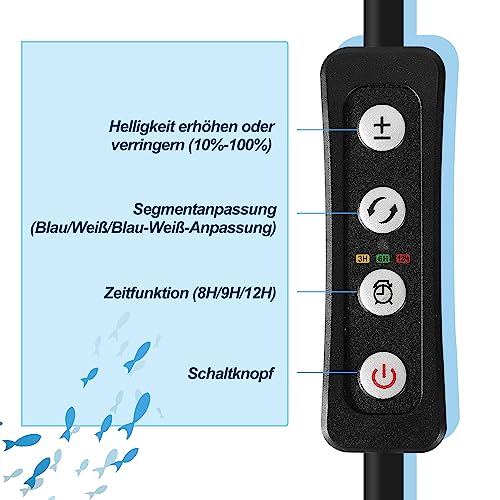 Sonnewelt Luce LED Acquario, Lampada per acquario da 16 W Lampada per acquario a luce blu bianca con staffa regolabile per acquari d'acqua dolce da 50-65 cm
