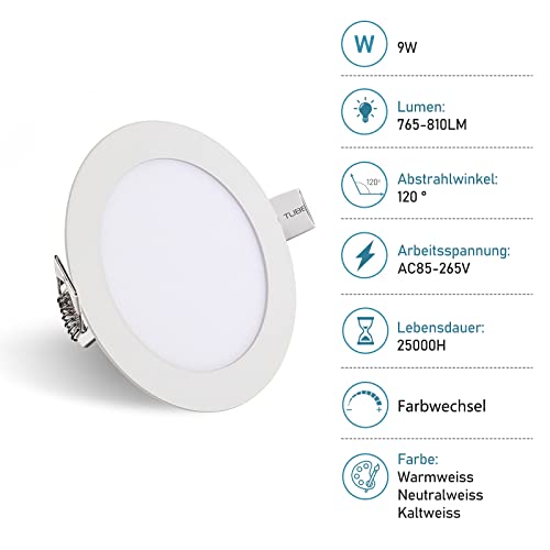 Sonnewelt Set di 6 faretti a LED da incasso, 9 W, rotondi, con cambio di colore, 3 in 1, IP44, per camera da letto, soggiorno